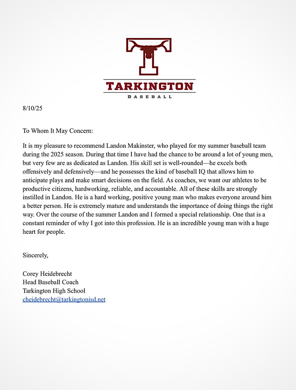 Landon Makinster 2026 6’ 180lbs